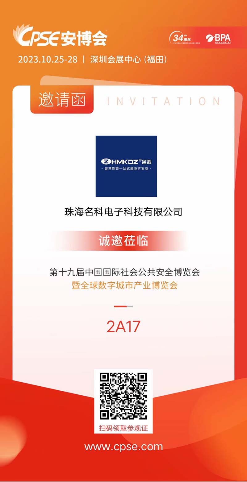 珠海名科電子科技有限公司(以下簡稱:名科科技)受邀參加第十九屆中國國際社會公共安全博覽會暨全球數(shù)字城市產(chǎn)業(yè)博覽會,向全球展示其在智能安防領(lǐng)域的卓越實力。邀請新老客戶共享商機(jī),讓我們在合作中實現(xiàn)雙贏。